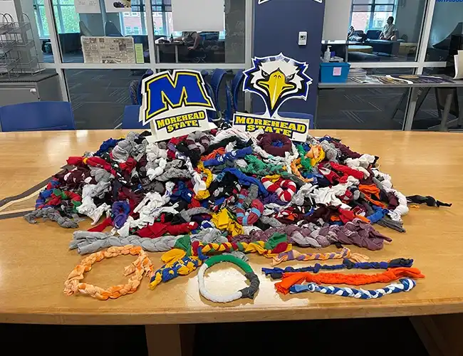 - Making 480 dog toys from old t-shirts to donate to local animal shelters (led by MSU's Student Government Association).