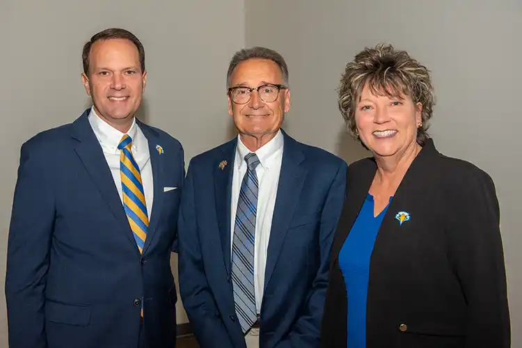 Advancement Rick Hesterberg and his wife, Professor Emeritus Dr. Latonya Hesterberg. - Photo 2, left to right: Education student Sarah Miller and President Morgan.