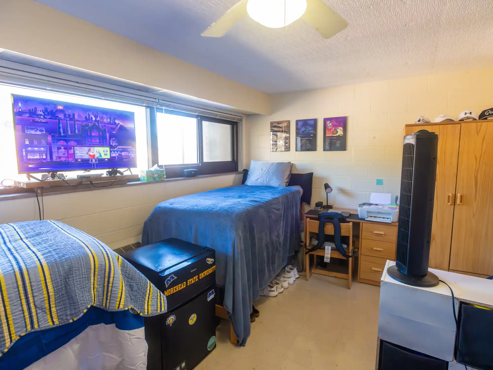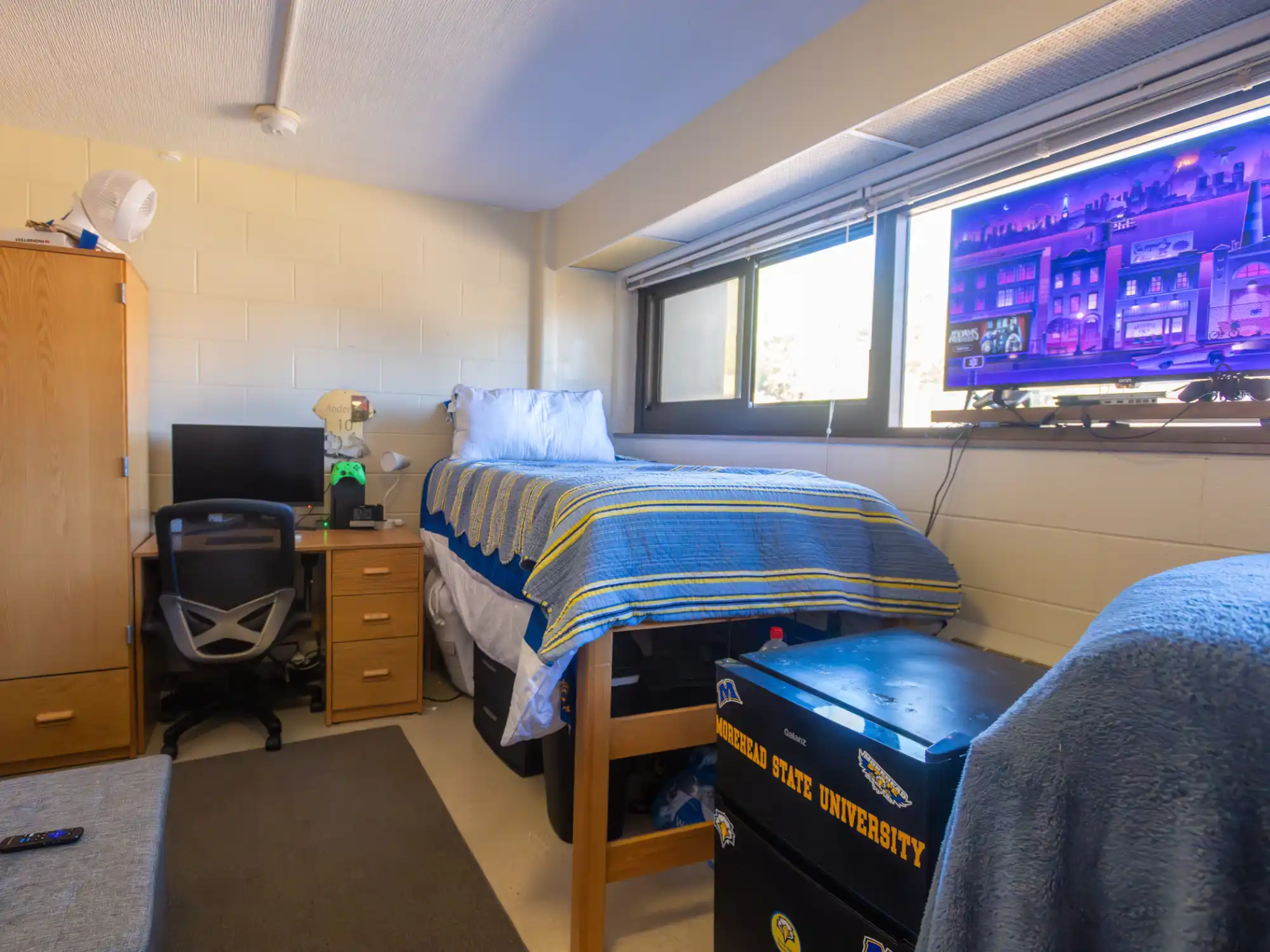 Bed arrangement for a standard dorm room in East Mignon Hall.