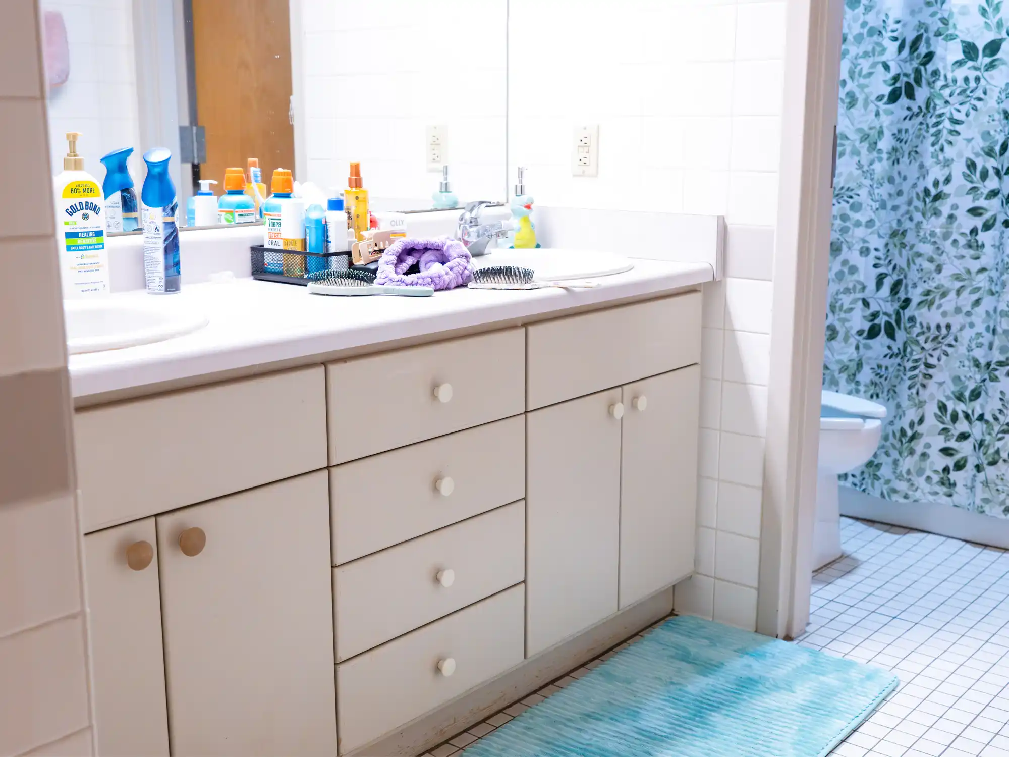 A standard bathroom in a Mays Hall apartment.
